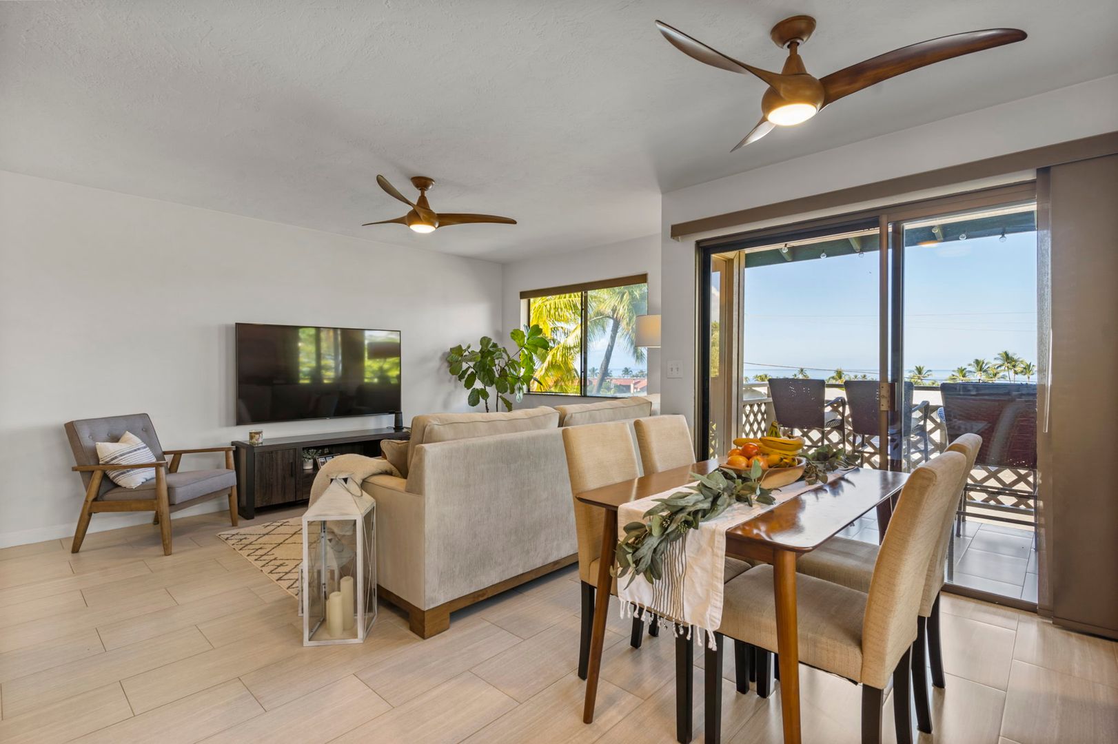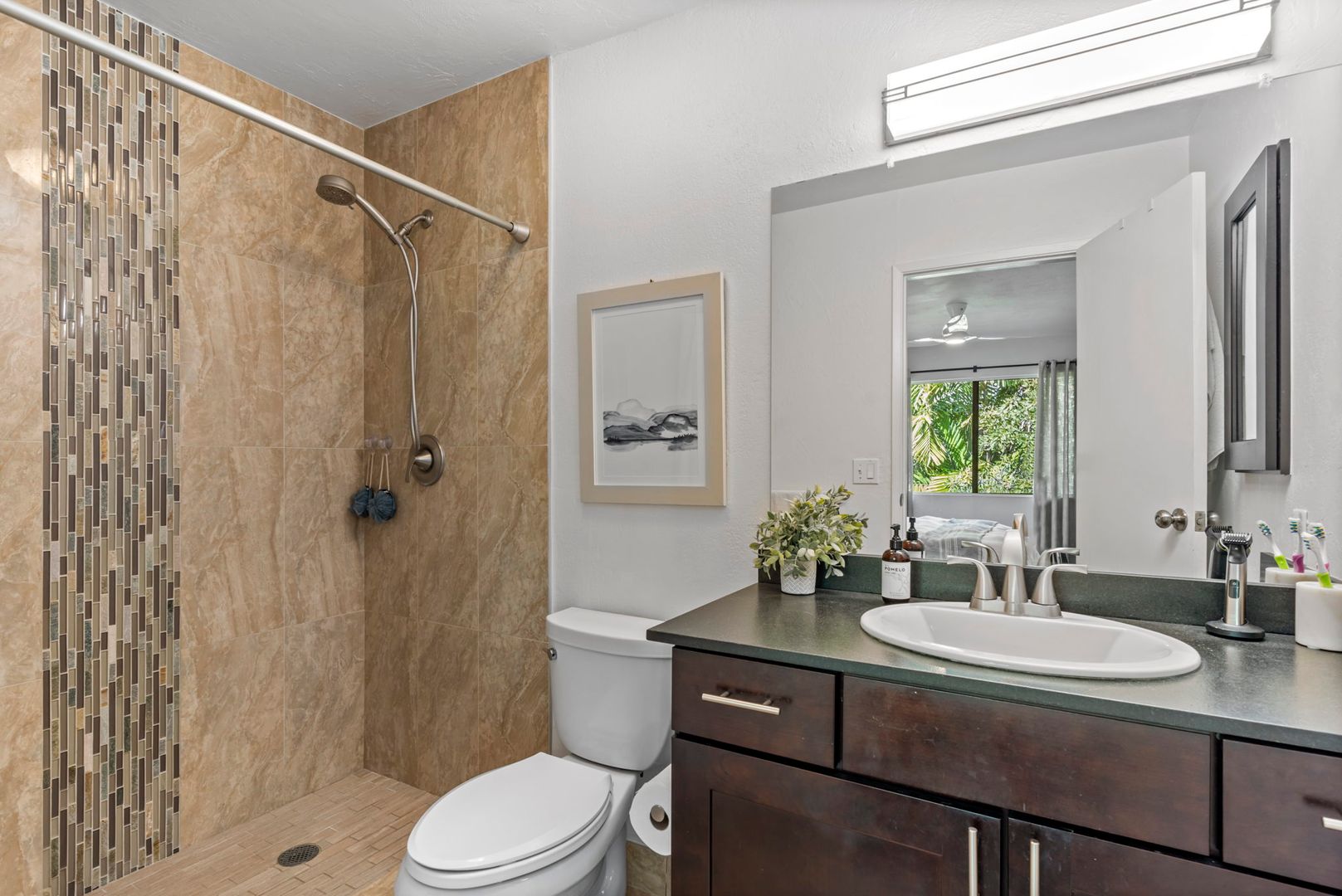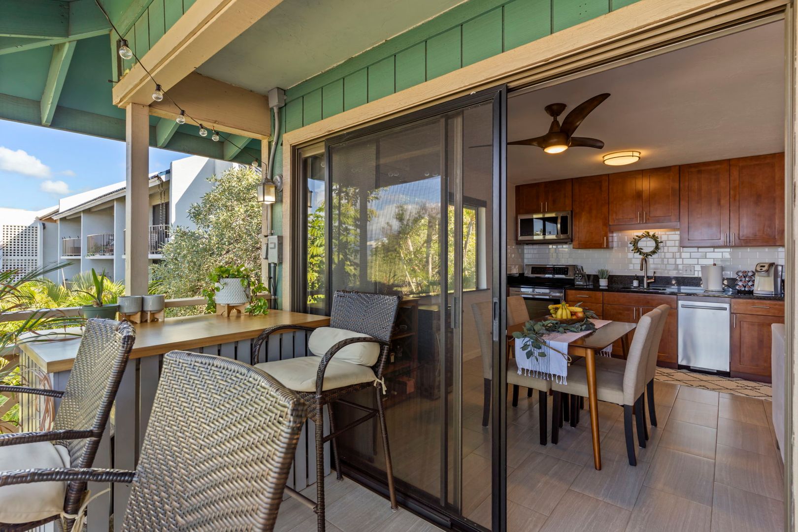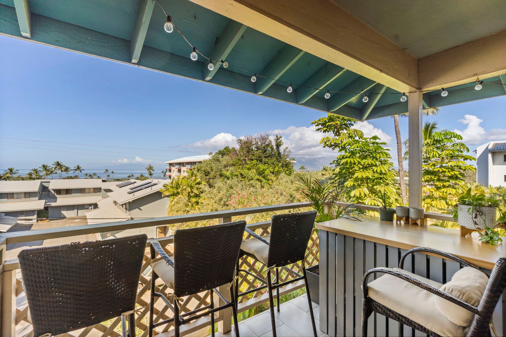 Tucked away in South Kihei is a peaceful, private, and shady 2-bedroom, 2-bathroom, top floor unit with ocean views. Its convenient location is steps away from dining, shopping, the Cove Beach Park and Charley Young Beach.