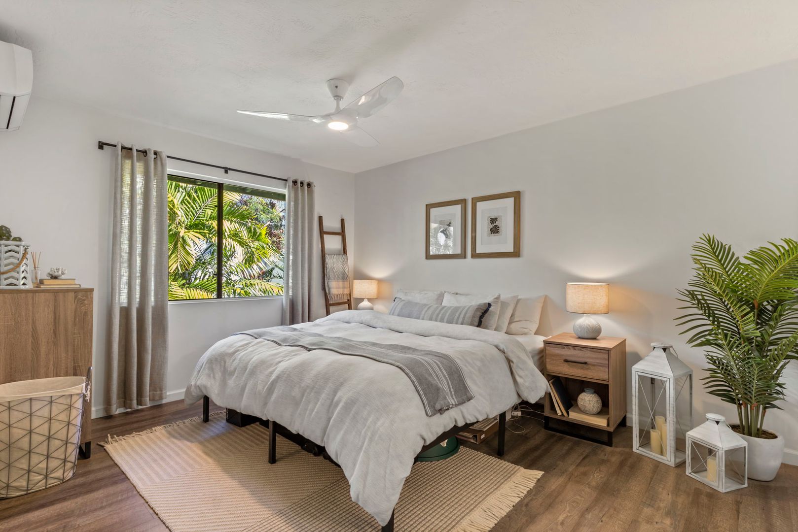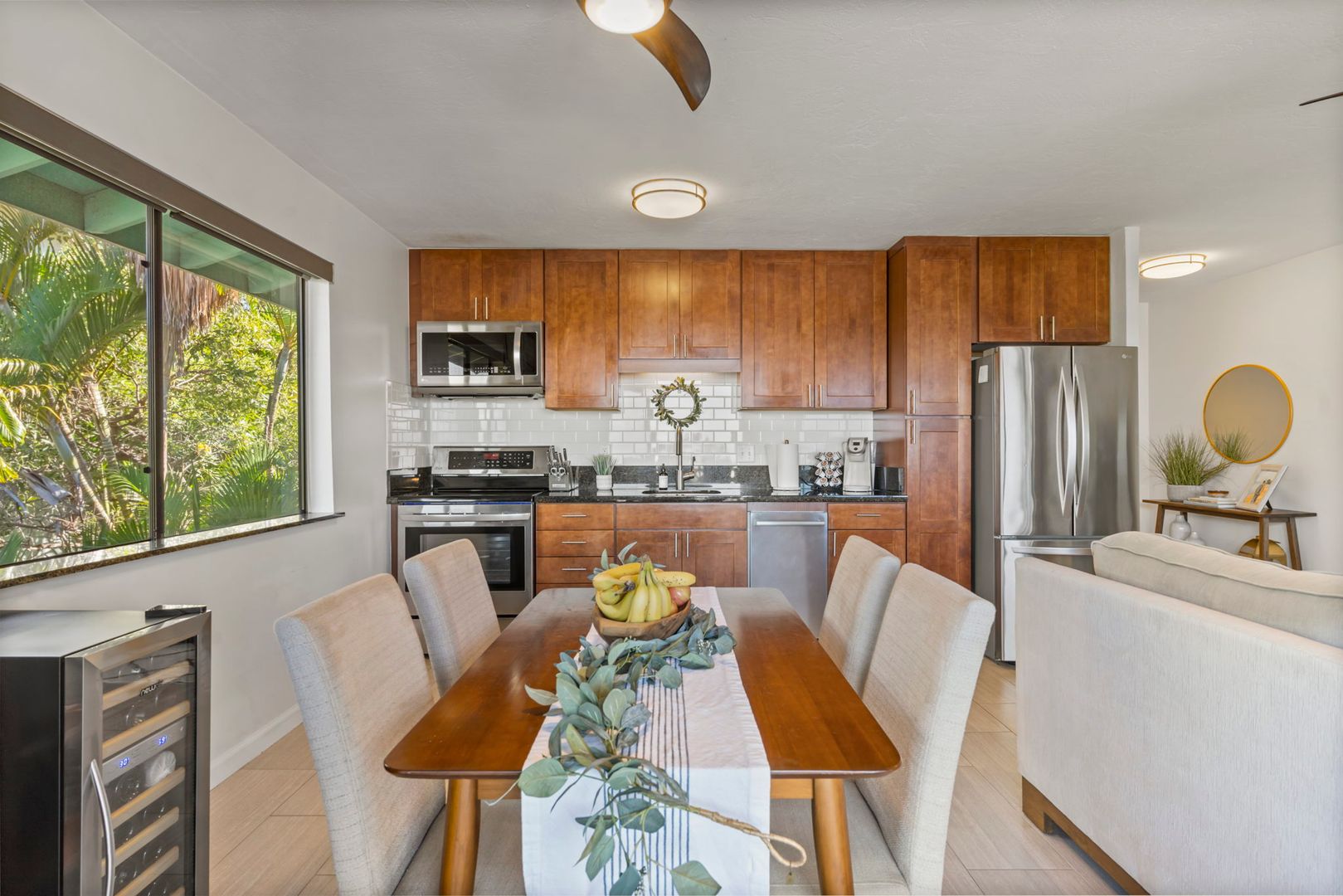 This boutique complex has a total of 12 units perfect for easy island living. It also comes with one assigned parking stall. The unit comes fully furnished with appliances including a washer and dryer, stainless steel oven, range, refrigerator and freezer, dining table, TV's, and more. Ready to make this place home, today!