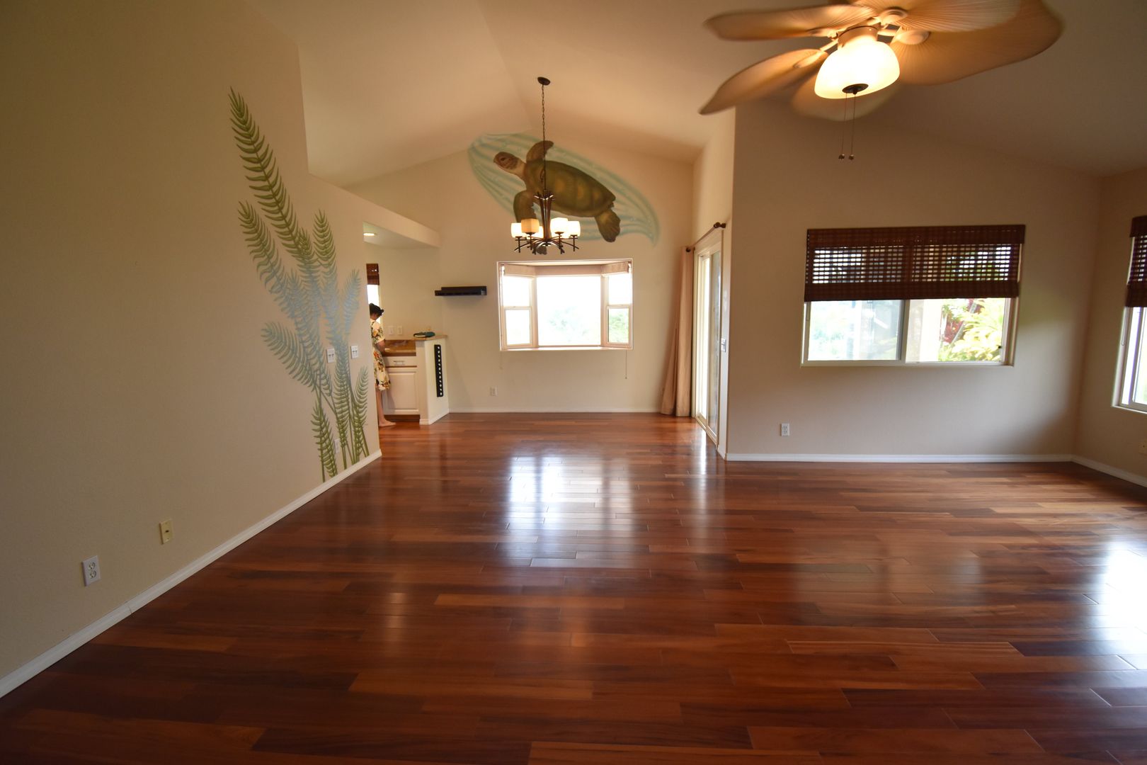 The property is surrounded by beautiful, lush landscaping that is professionally maintained and included with the rent, allowing you to enjoy the gardens without the upkeep. Relax on the spacious custom patio where you can often hear the sound of the surf while enjoying Kona’s balmy ocean breezes. The extended outdoor living area is perfect for BBQs and entertaining with friends and family.
