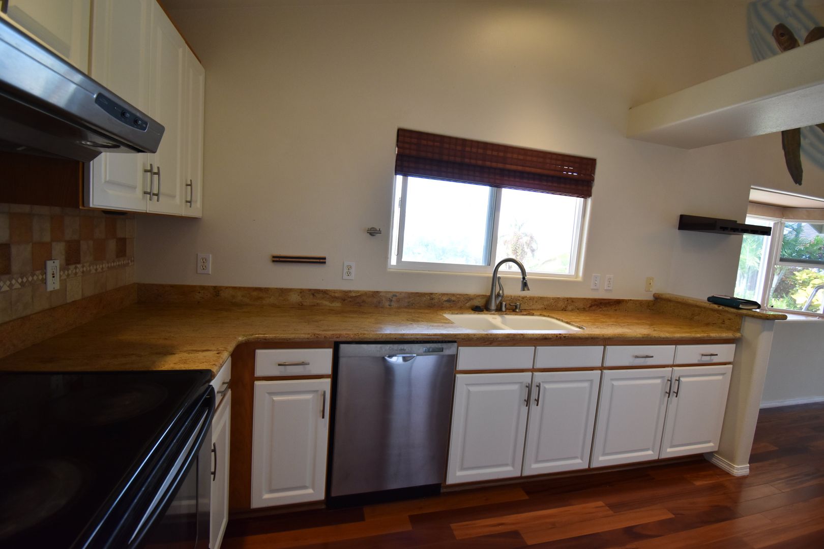 Beautifully maintained single-level home located just a few short blocks from White Sands Beach Park, offering nice ocean views and comfortable outdoor living. This home features a solar photovoltaic system, granite kitchen countertops, quality stainless steel appliances, Brazilian Tigerwood flooring, vaulted ceilings, and many other upgrades throughout. **Pictures will be updated. The house is currently being painted white throughout, the murals are no longer there.**