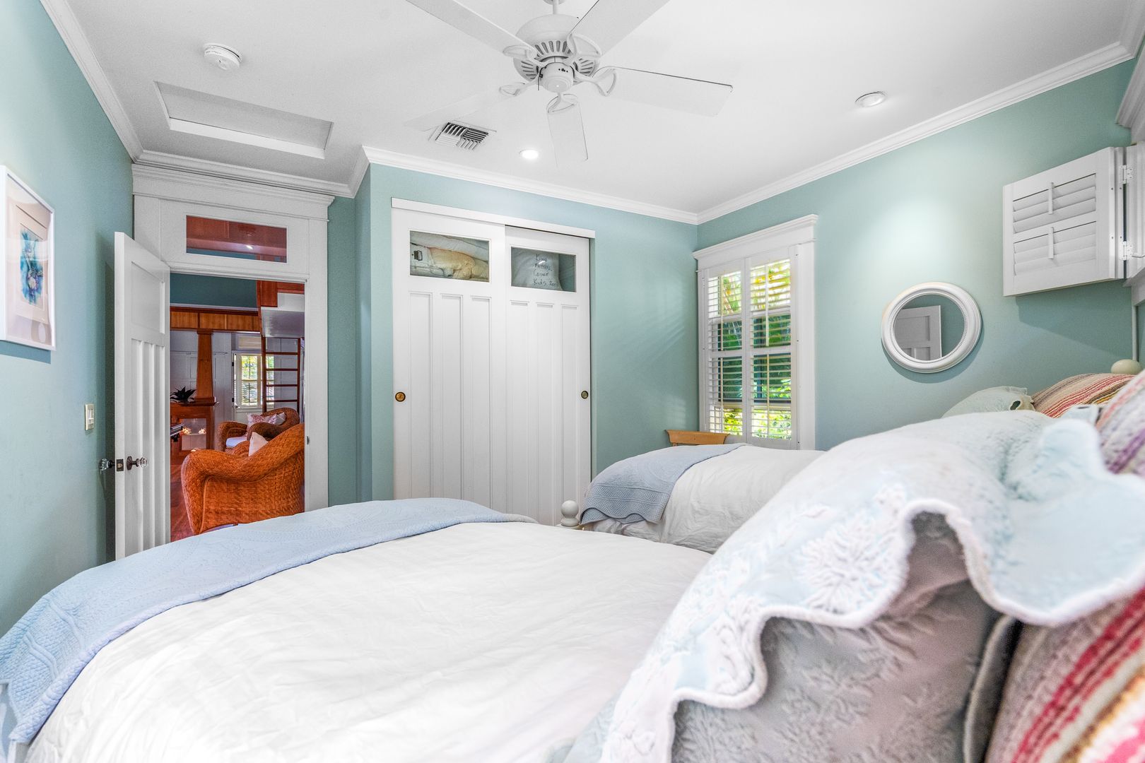 The second bedroom furnished with a King Bed an ensuite bathroom shower/tub combo. The third bedroom has two twin beds that can be converted to a King Bed and has a bathroom with a walk in shower.
