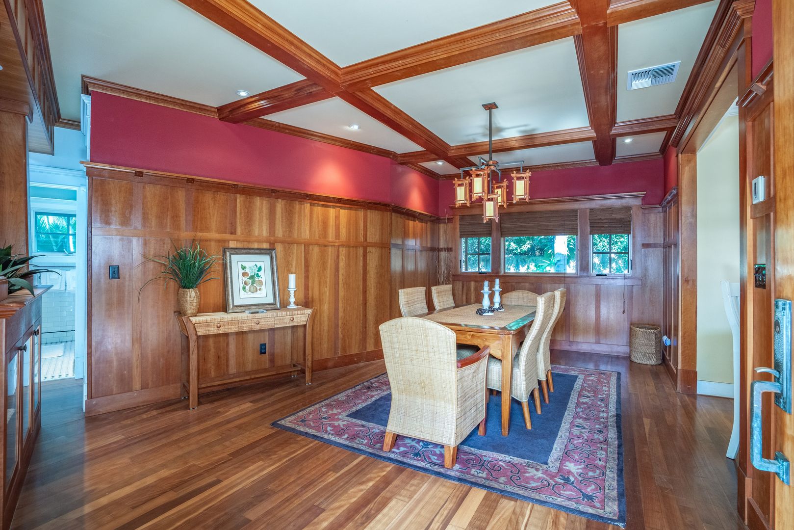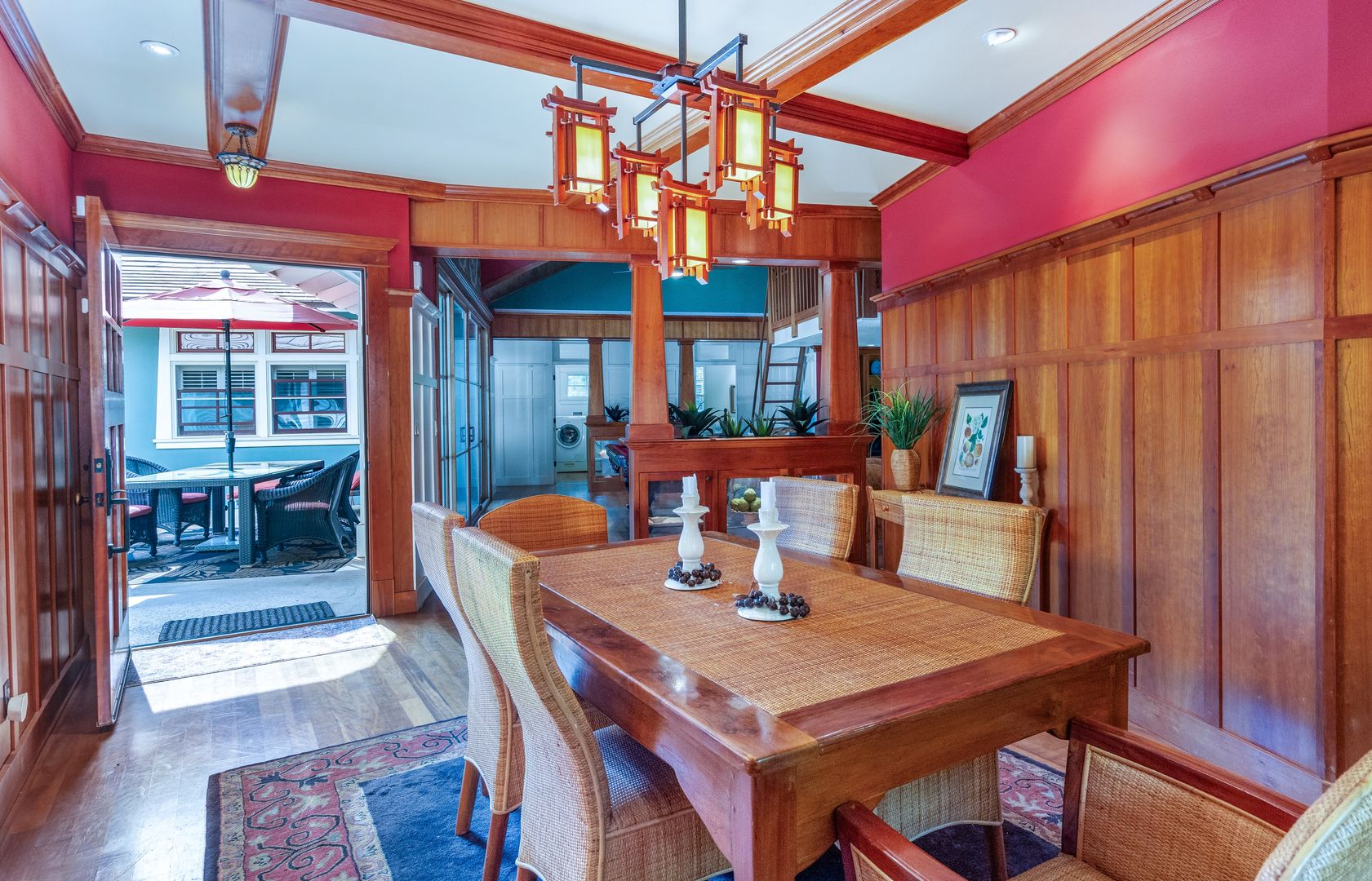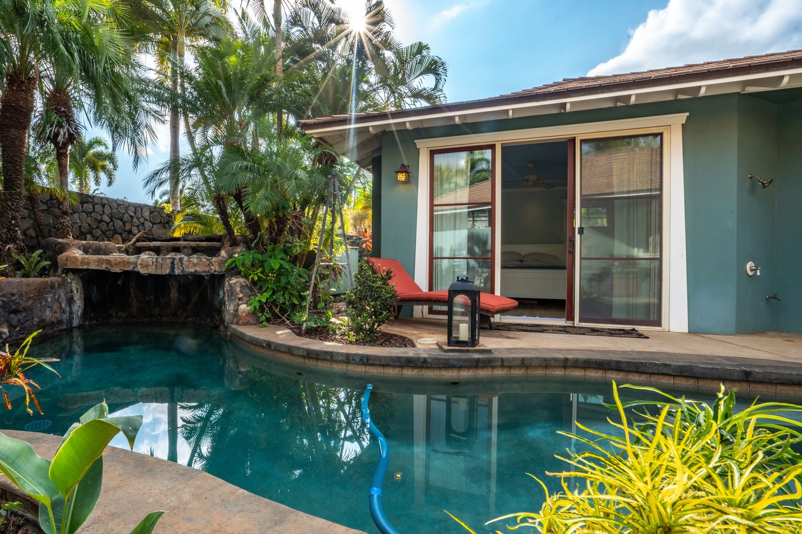 Step outside to the courtyard pool area to relax, where the mature tropical landscape provides a stunning backdrop with a luxurious salt water pool in the front yard.