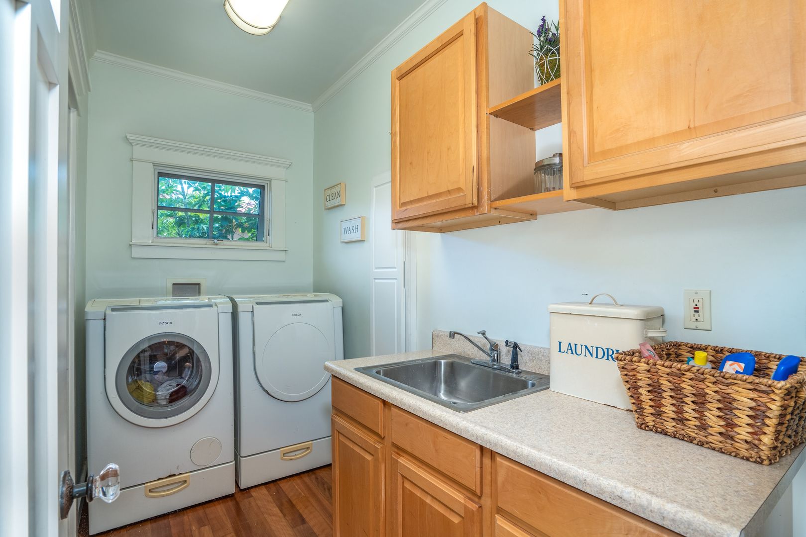 Enjoy the convenience of this home as it is offered furnished, with a garage, complete with Central AC and includes a laundry room for the full size washer and dryer.