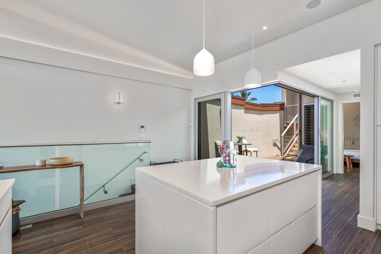 This modern condo, has approx. 2500sq ft of indoor and outdoor space, the interior boasts natural light with floor to ceiling windows and an open floor plan that intensifies the spacious open-air lifestyle desired on Maui. The kitchen is designed for entertaining and includes high end appliances.