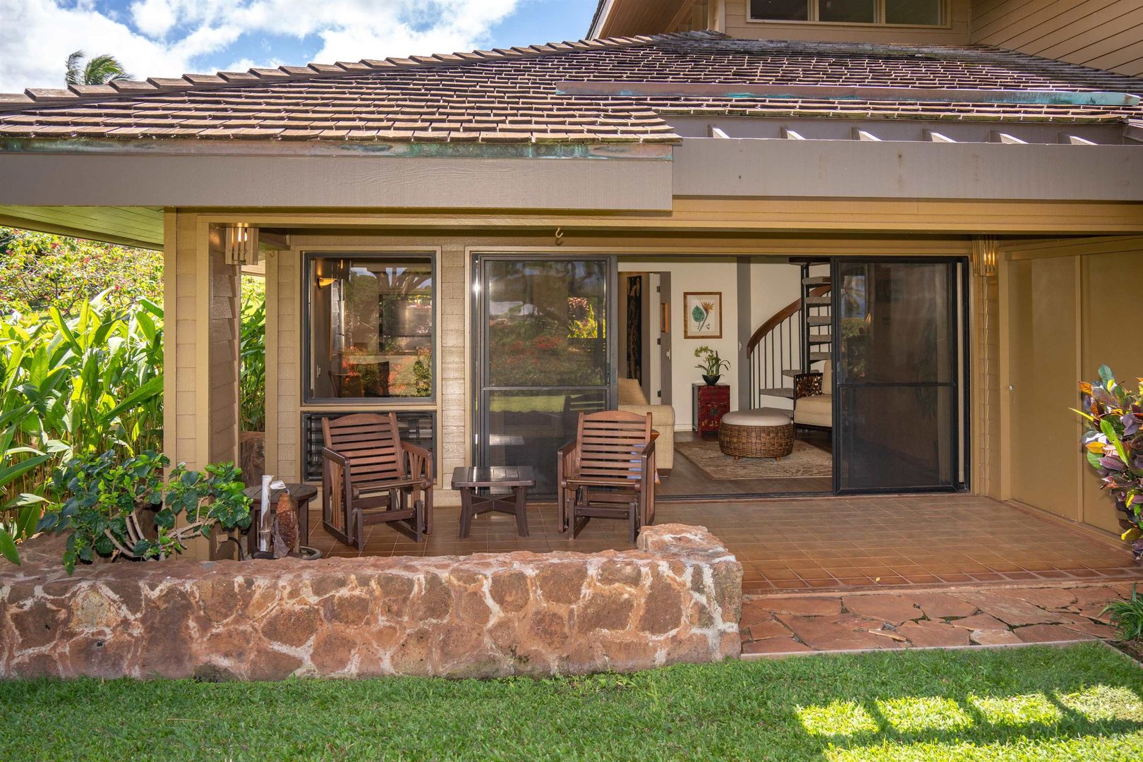 The private location features an expansive lawn off the lanai and around the side, and lush landscaping makes for a private retreat.
