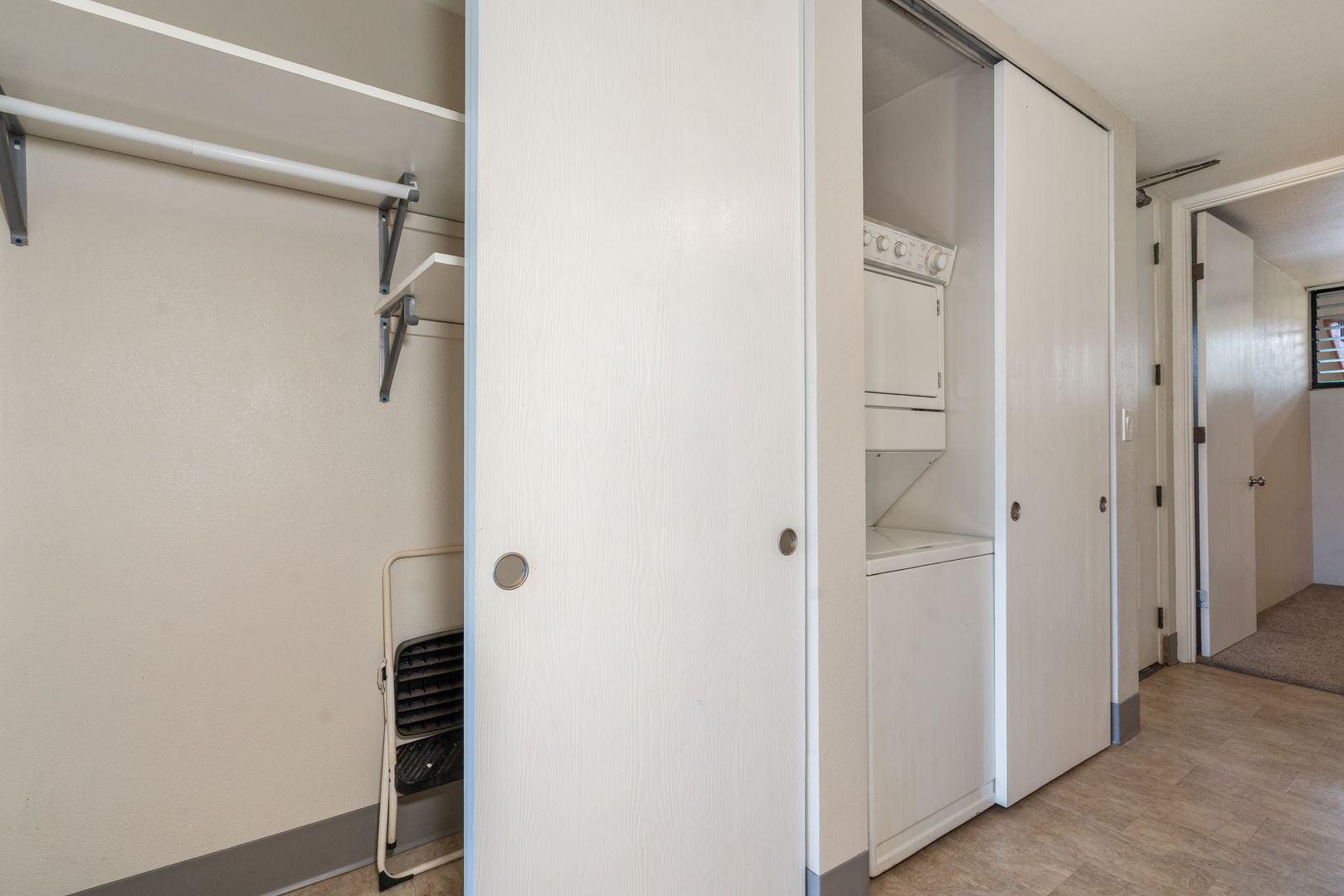 Complete with a stacked washer/dryer conveniently located in the hallway near the bedrooms and bathroom.