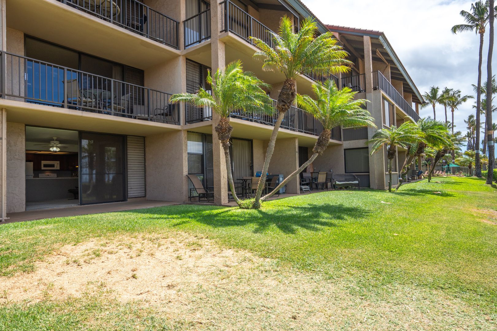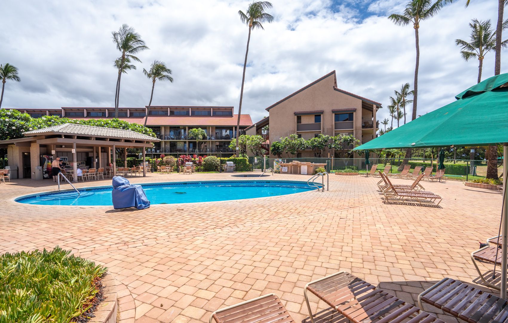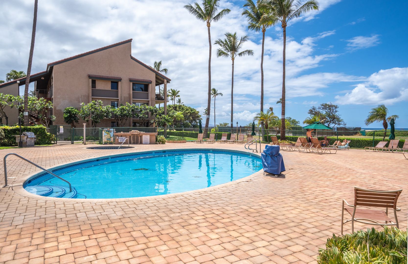 The Luana Kai complex features impeccably maintained tropical landscaping, a beautiful swimming pool, a jacuzzi, sauna, tennis and pickleball court, shuffleboard court, and an outdoor kitchen and BBQ area with an enclosed gazebo that’s perfect for outdoor dining. Parking is included, unassigned.