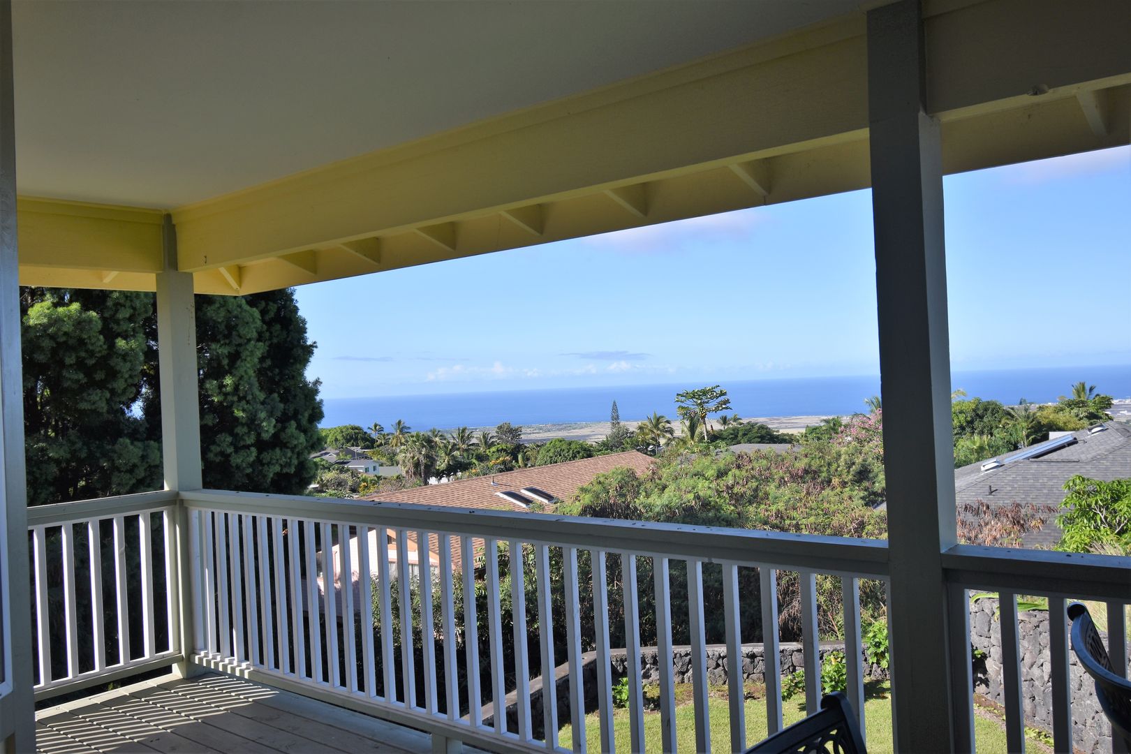 This 4-bedroom, 3-bathroom home is located in the desirable Kona Palisades at a comfortable, cooler elevation. This furnished two-level home offers stunning ocean views, living areas, and a nice private yard.