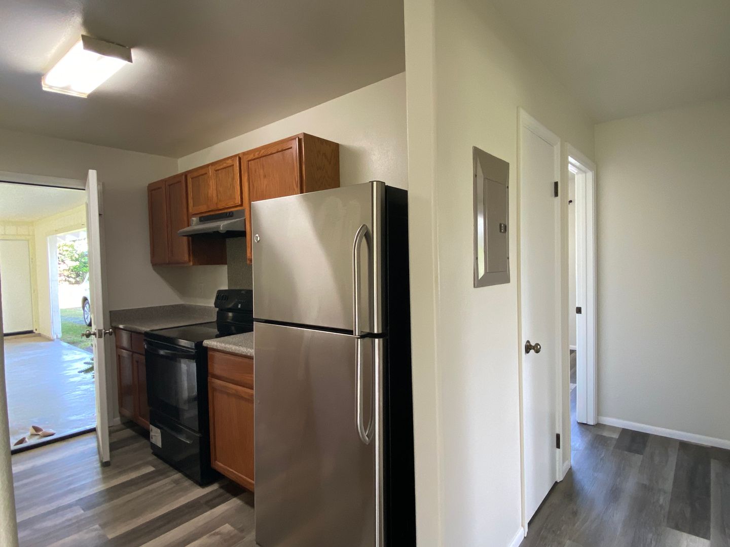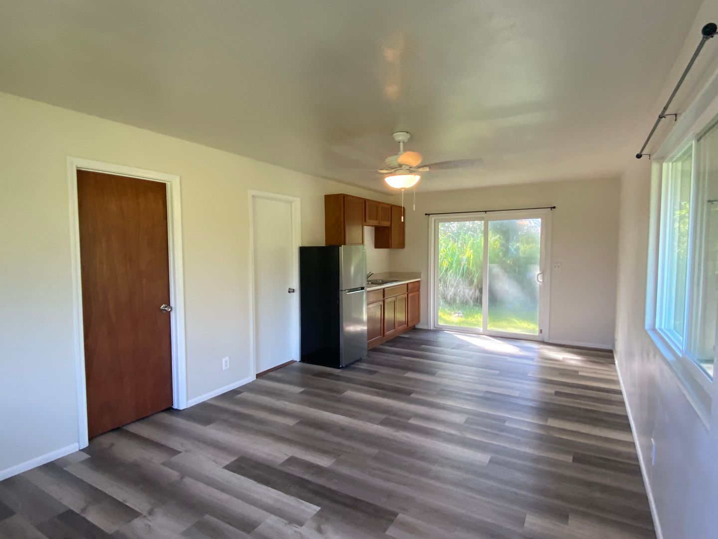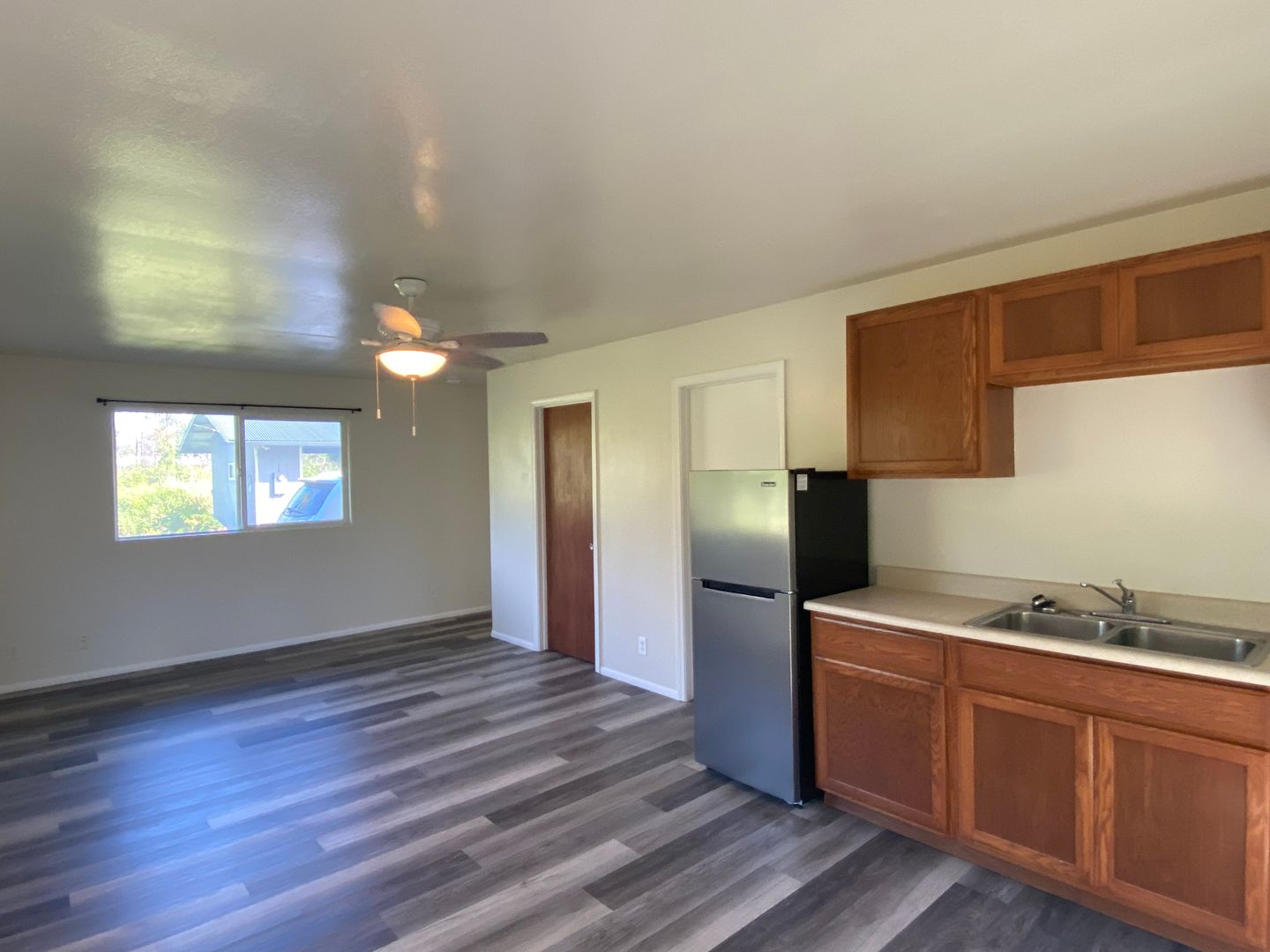 Located in Tiki Gardens on a paved road with no through traffic! This home features two living spaces separated by a two car carport. There are two bedrooms, one bath, kitchen and living area on one side, and a large studio style room with its own entrance, bathroom, walk in closet, and kitchenette on the other side. Freshly painted interior, new vinyl plank flooring, and ceiling fans throughout.