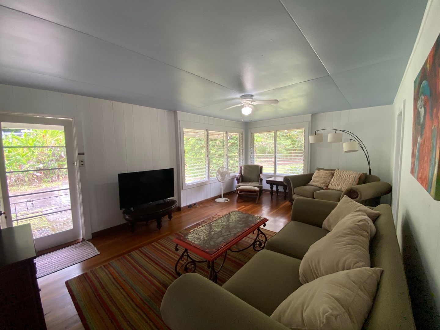 Charming plantation-style home located at the end of a quiet street in Papaikou. This partially furnished 3-bedroom, 1-bath comes with all the basics and home offers classic island living with louver windows for excellent cross breeze , hardwood floors, and a small screened-in lanai for enjoying the outdoors. Includes a washer and dryer for convenience, and yard service is provided. Less than 10 minutes to Hilo for shopping, dining, beach parks, and amenities.