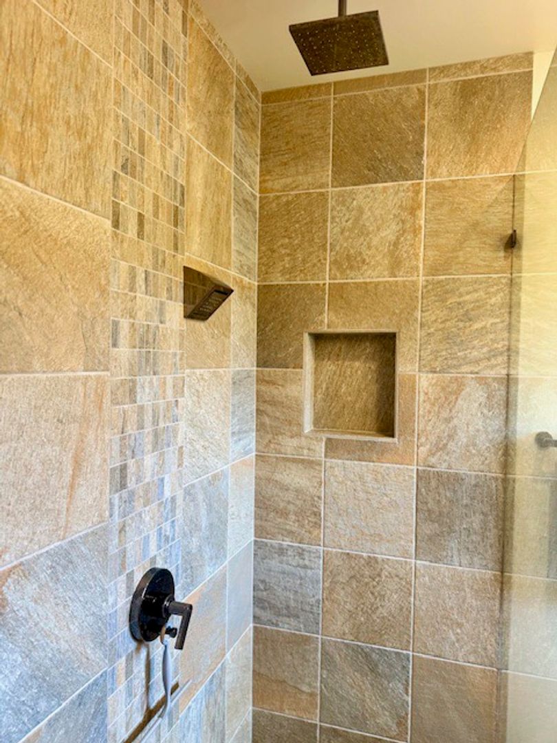 There are two upstairs guest rooms that boast newly remodeled ensuite baths with custom tiled showers and luxury rain shower heads.