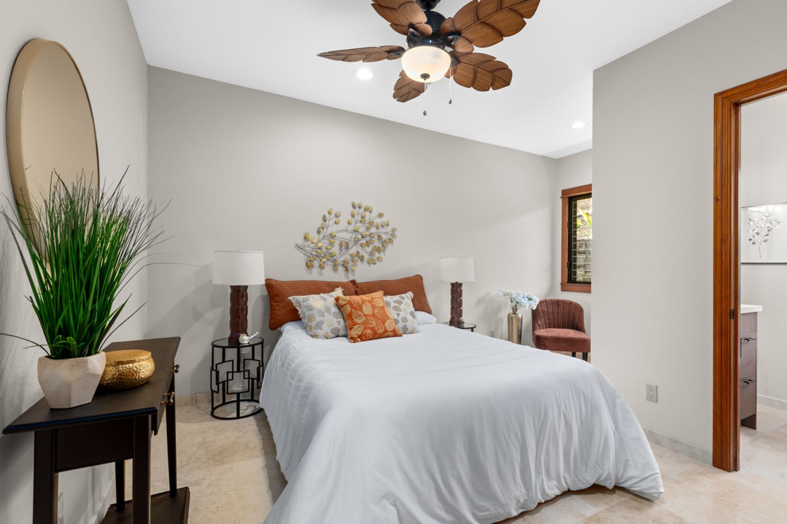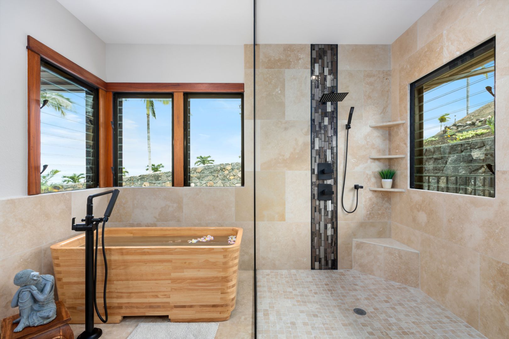 Step outside and unwind in your private pool and hot tub, surrounded by tropical landscaping and breathtaking ocean and mountain views completes this peaceful outdoor oasis.