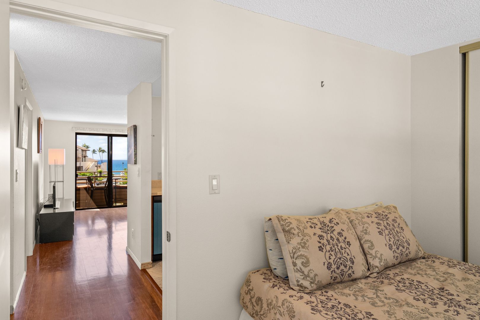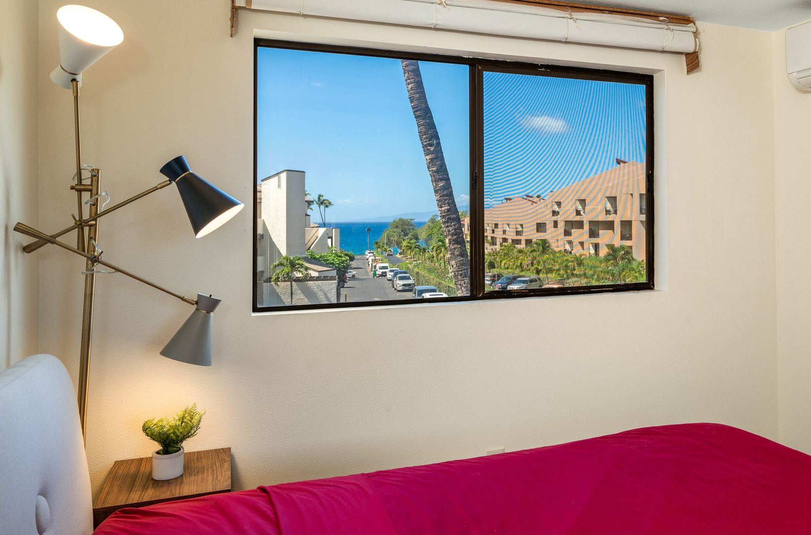 This two-bedroom, two-bathroom condo is one of the rare few at Kihei Shores that boast stunning ocean views. This condo was remodeled and features Quartz countertops, Graber window treatments, and Bamboo flooring throughout.