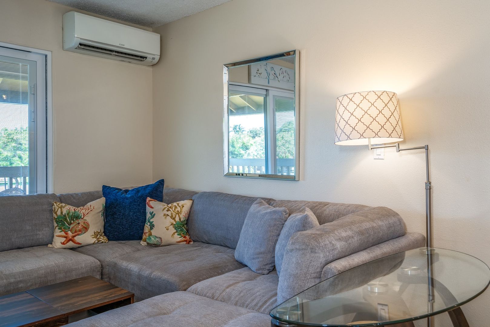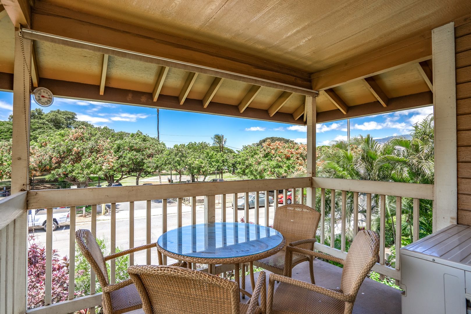 2 bedroom, 1.5 bathroom, 2nd floor end unit in Kihei Villages with peek-a-boo ocean views, AC and 1 parking space. Brand new dishwasher just installed. Across the street from the ocean, canoe club, & park. Close proximity to restaurants and dining, schools, shopping and quick access to central and west side towns. This unit is lightly furnished, please provide you own linens, towels and pillows.