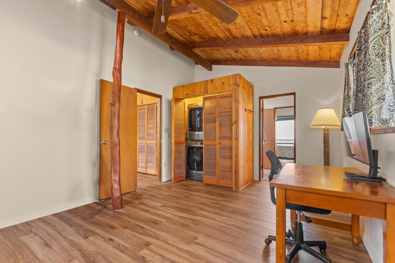 Enjoy the beauty of high tongue-and-groove ceilings throughout, creating an open, airy feel. VPF in living room and bedrooms, tile in kitchen for easy cleaning. New washer, dryer and refrigerator.