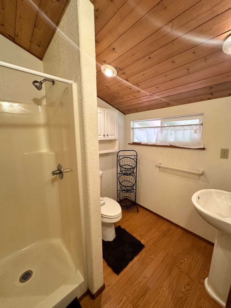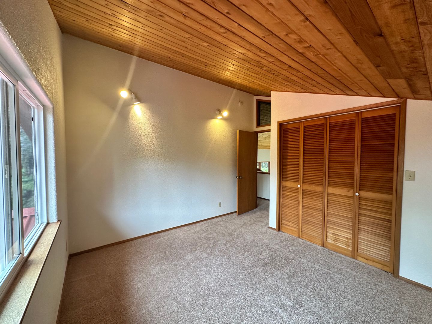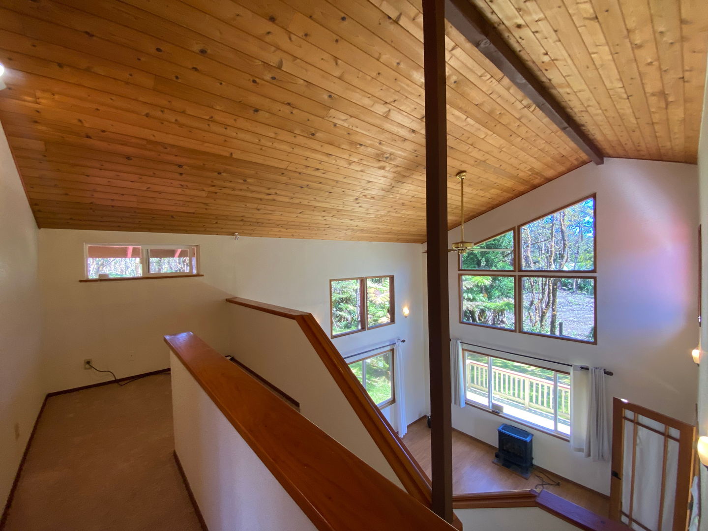 Two-story 3 bedroom, 2 bathroom home located at a cooler elevation in Volcano. Downstairs features an open kitchen, living room, one full bath and bedroom with sliding glass doors to lanai. Upstairs has two bedrooms and and the second bath. Tall ceilings and large windows make this home feel open and expansive. Dog considered with an additional pet deposit. Yard service included.